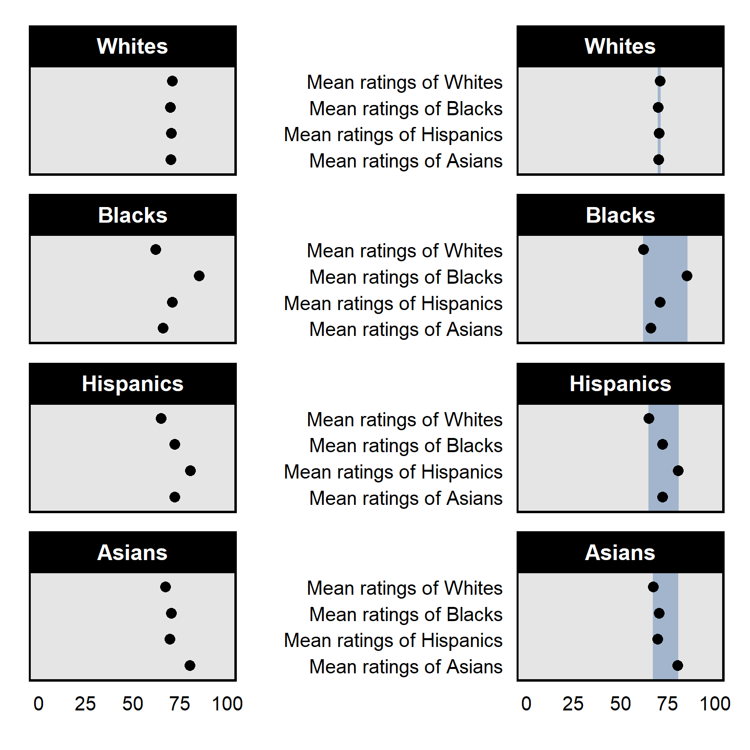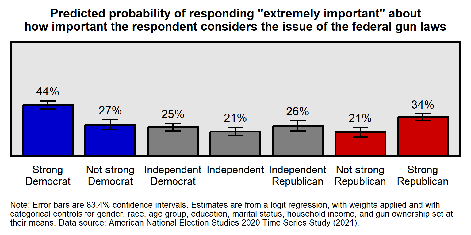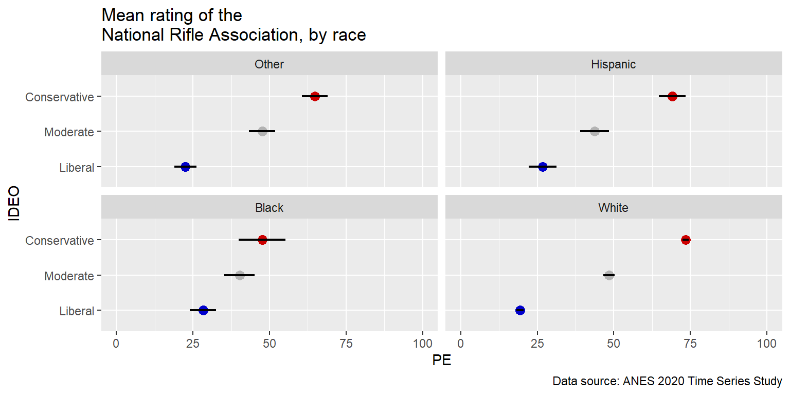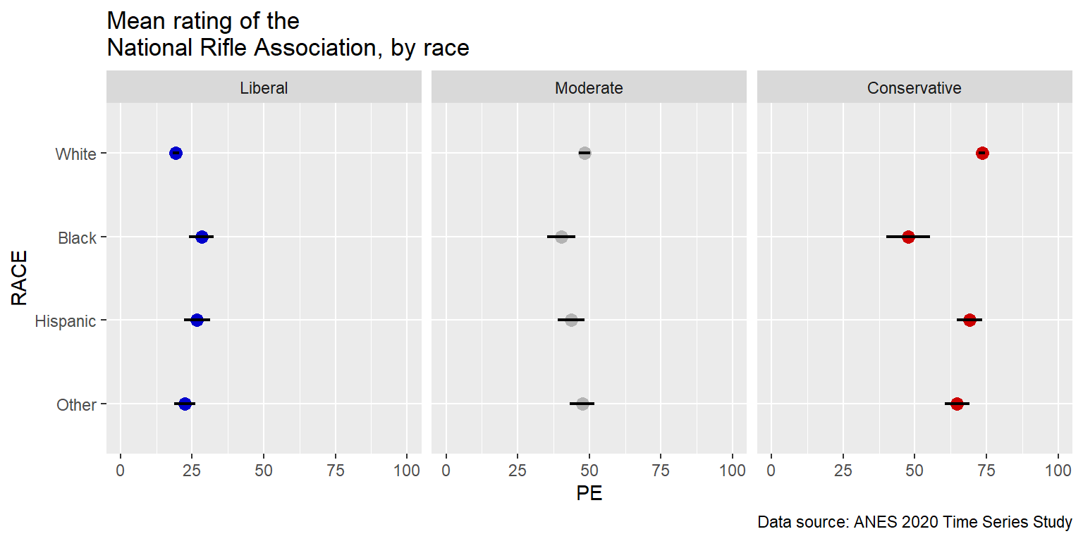 Use measures and scales that communicate substantive sizes. For the plot, the point estimate is about 3.9 for strong liberals and about 3.6 for strong conservatives. Is that a large difference? The plot isn’t clear what the scale is, so it’s not clear how much the plotted difference matters.