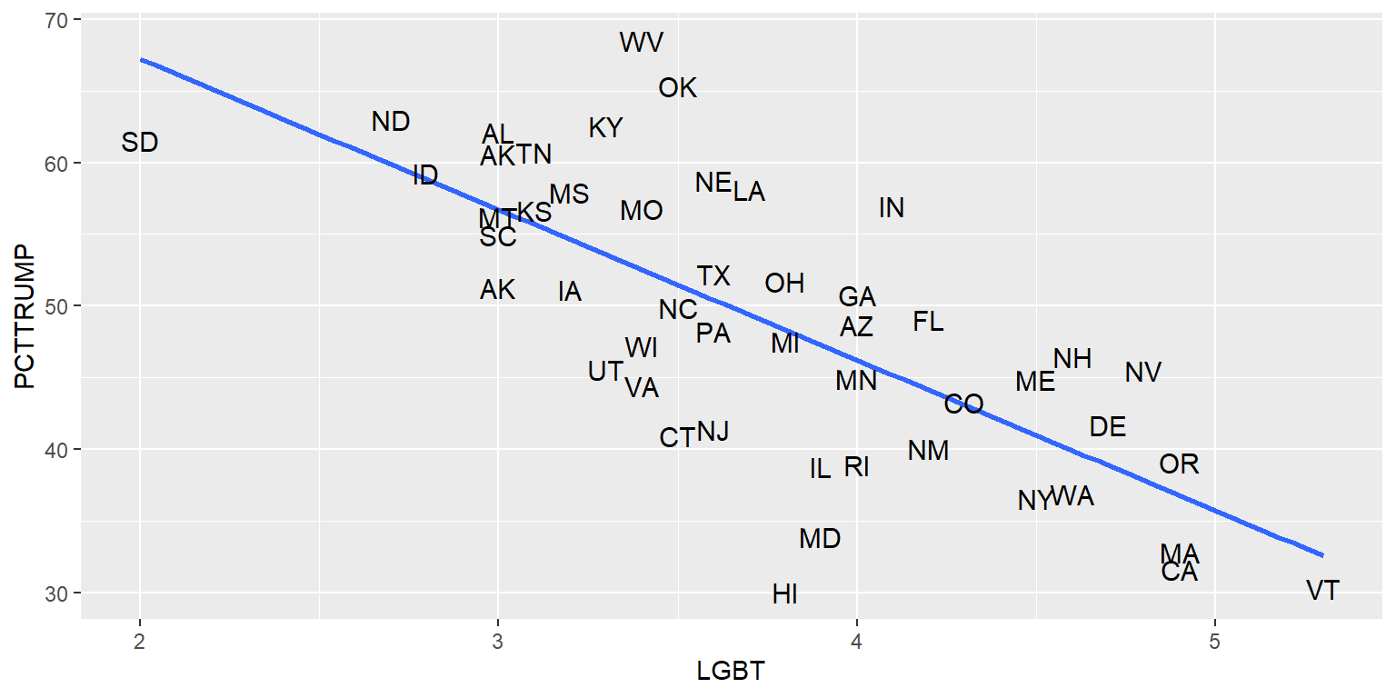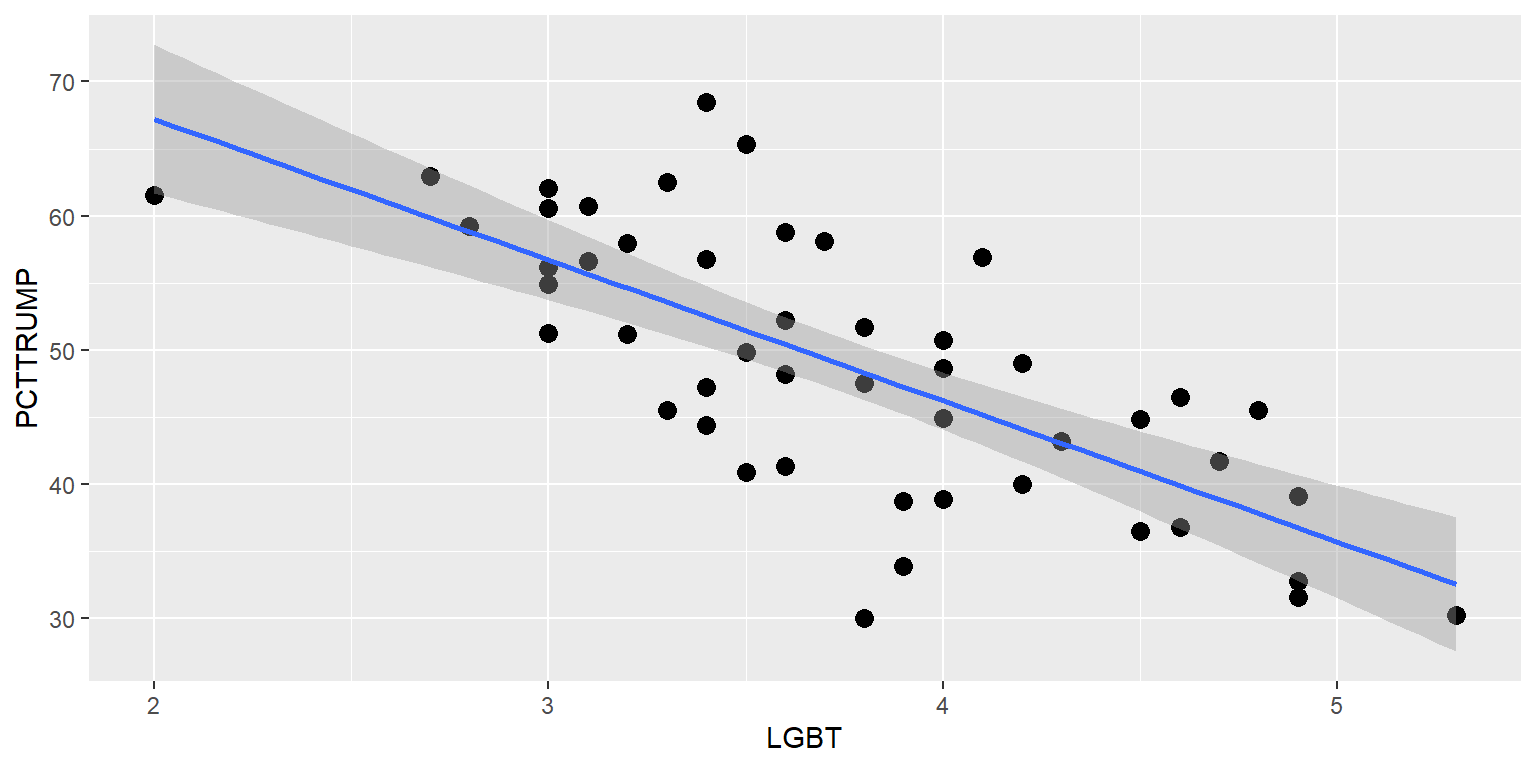 ggplot(data=TRUMP, aes(x=TRUMP50, y=LGBT)) +